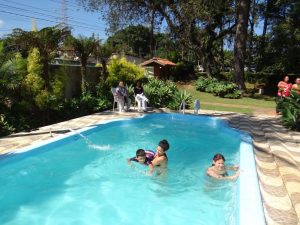 Criançada se divertiu na piscina da Chácara Miyake