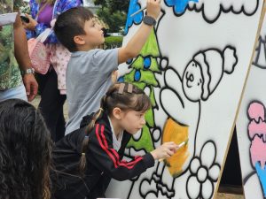 Atividade de pintura em painel animou a criançada