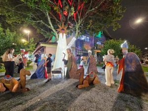 A celebração começou com apresentações do Coral Infantil do Colégio São José e do Coral EnCanto, do Centro de Referência ao Idoso (CRI), que emocionaram o público com um repertório natalino. Em seguida, o momento mais aguardado tomou conta do Paço Municipal: o acendimento oficial das luzes de Natal, que iluminou a área central e emocionou as famílias presentes.