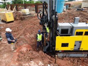 Chegada de equipamento para execução das estacas marca avanço na base da estrutura; drenagem e produção de vigas seguem em ritmo contínuo