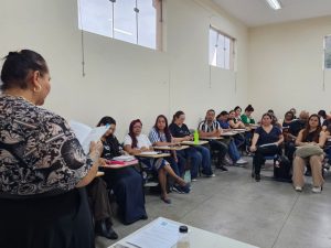 Segundo a orientadora educacional da Secretaria de Educação, Tatiane Ribeiro, a reunião também foi importante para acolher coordenadores recém-ingressos na função e reforçar a continuidade das ações já desenvolvidas na rede.