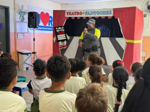 Por meio de um teatro de fantoches, os alunos do 1º ao 5º ano foram orientados de forma lúdica e interativa sobre comportamentos seguros no trânsito. A apresentação utilizou personagens e histórias envolventes para abordar temas como o uso do cinto de segurança, a importância de atravessar na faixa de pedestres e os riscos do uso do celular ao dirigir.